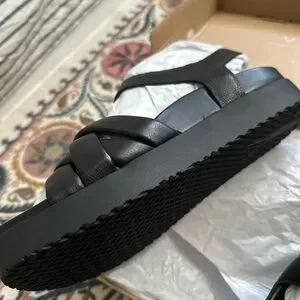 ORIGINAL RETAIL FOR $130! Chic black leather sandals with a stylish woven design. Ideal for casual or dressy looks. Velcro closure easy on easy off. Feel free to ask any questions about these never worn before real leather sandals.