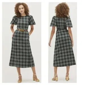 Hill House The Constance Dress Green Wallace Plaid Size Medium NWT