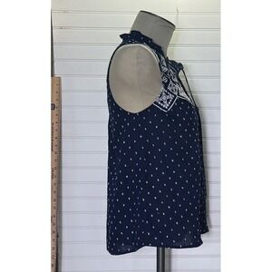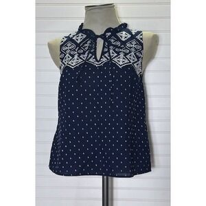 Mine Women's Small Sleeveless Navy Blue Top White Embroidery Aztec Western Boho