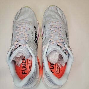 Experience ultimate comfort and style with New Balance men's running shoes. Featuring a sleek white design with vibrant neon accents, these shoes are perfect for any athletic endeavor. Never been wearing
