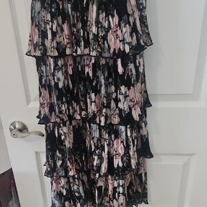 Chic strapless dress with floral pattern. Features tiered layers for added elegance. back zipper. nwot