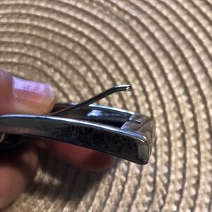 Classic black leather belt for men. Perfect for any occasion. Genuine leather. 7 holes with silver tone buckle. Approx. 55 1/2 inches long from edge of buckle to tip. One inch wide. Made in Germany. Pics show some discoloration/ wear on bottom corners of buckle. Leather is in excellent condition.
