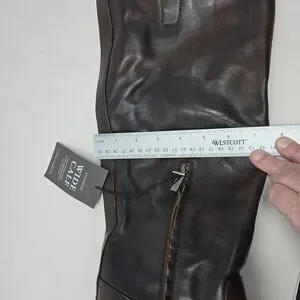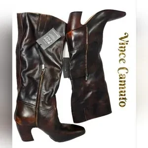 Vince Camuto Cristin Knee High Boots Sz 11M Wide Calf Washed Brown Leather