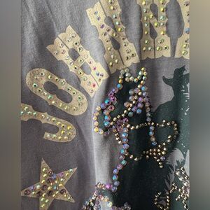 Casual tee with unique graphic design. Ideal for everyday wear. Wash in cold water. Hang dry. There is a small hole near collar.