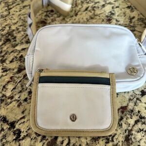 Stylish small crossbody bag by Lululemon with matching wallet.