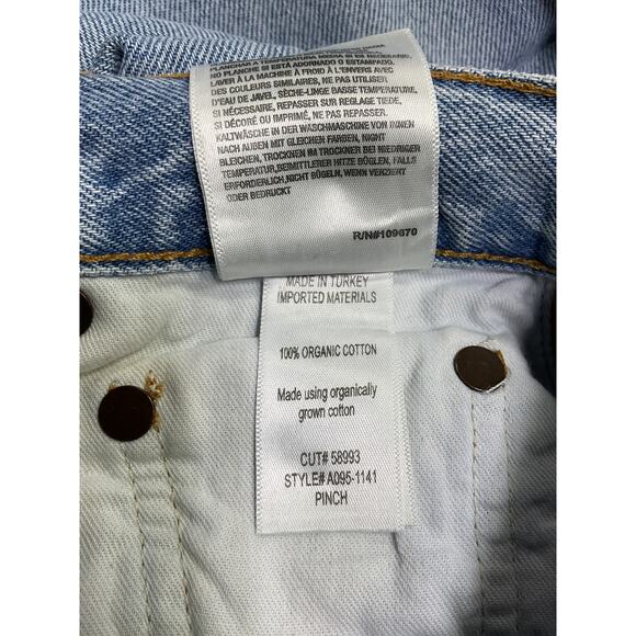 Stylish light blue jeans. High-waisted fit. Classic five-pocket design. Perfect for casual wear.