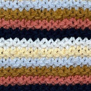 Madewell Arden Striped Pullover V-neck Cropped Sweater. This wear-everyday striped cotton sweater is one of those trend-defying tops you'll hold onto for years. Textured rib-stitch Slightly cropped Color: Sweet Dahlia Long raglan sleeves Striped pattern Knit construction. Cotton, machine wash Size small. See photo for approximate flat-lay measurements. Excellent preloved condition. No flaws noted except perhaps some very minor wash wear, to be safe, but even that is debatable.