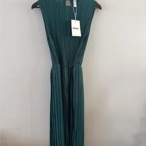 Chic teal maxi dress by ONLY. Features elegant pleats and sleeveless design.