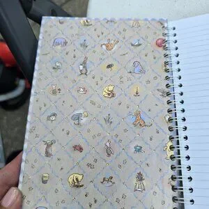 Winnie the Pooh Classic Walt Disney Co by Michel & Co Hardbound Notebook Writing. Winnie the Pooh, Piglet & Christopher Robbins dancing around. Lined Smaller Notebook. Eyore, Tigger, Honey pot on inside covers. Pre-loved condition. Some pages are gone but plenty left! bound wiring may not line up perfectly. Very Sweet for a nursery picture or decor.