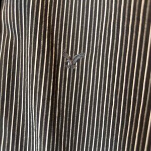 Men's American Eagle Dress Shirt Vintage Fit Black White Stripes Contrast Collar