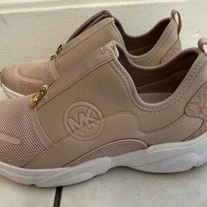 Michael Kors Beige Slip-On Sneakers with Gold Zipper