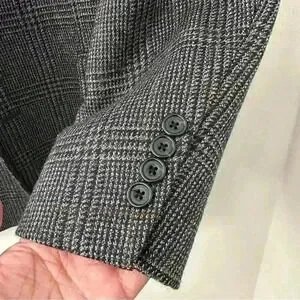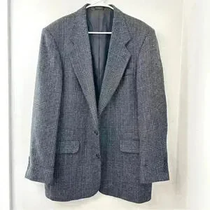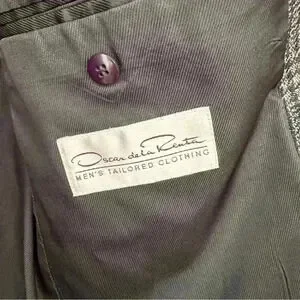 OSCAR DE LA RENTA Mens Grey Checkered Coat Suit Blazer 42L 100% Wool. Made in Columbia. There’s a tiny bit of hole on the inside part(see photo) but it’s unnoticeable still in great used condition.