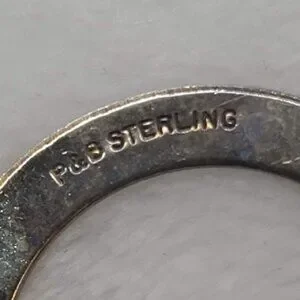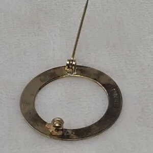 Vintage sterling silver circle brooch by P&B Sterling. Features a simple minimalist open-circle design with a classic pin clasp. Stamped P&B Sterling on the reverse. Measures about 1.25" in diameter. Timeless design suitable for everyday wear or as a collectible piece of mid-century jewelry.