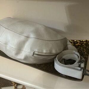 This stylish cream crossbody bag is perfect for any occasion. Its sleek design offers both functionality and fashion. Very popular Callie sling style bag from Latico Leathers. Last pic is from their website where this bag is currently available. I used this bag one time and the supple leather is clean and in excellent condition. Perfect for travel or everyday use. Multiple compartments and light weight.