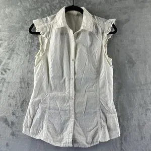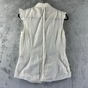 Merona Button Down Shirt Women's S White Subtle Textured Polka Dot Pattern
