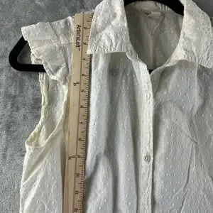 Merona Button Down Shirt Women's S White Subtle Textured Polka Dot Pattern. Good used condition, see pictures for details and measurements.