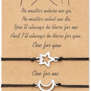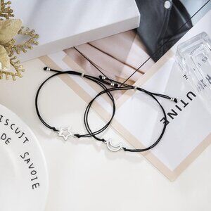 MATERIAL - Made of Smooth Black Cord and Crescent Moon & Star Beaded, This relationship far distance handmade bracelets set can be shared with your best friends, couple, family members, siblings, sister, lover