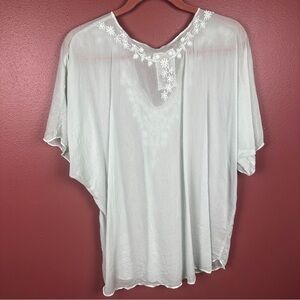 Johnny Was boho embroidered blouse v-neck blue green size medium