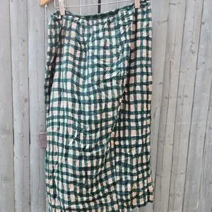 Plenty by Tracy Reese Midi Skirt – Green Peach Check Print, Size M