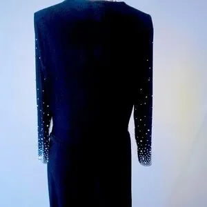 MSK Black Midi Dress with Pearl Embellished Sleeves β Size L (Worn Once)