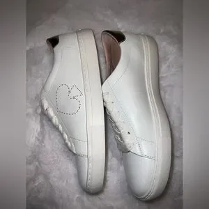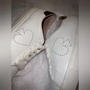 Step out in style with these chic white sneakers featuring heart embellishments. Perfect for casual outings.