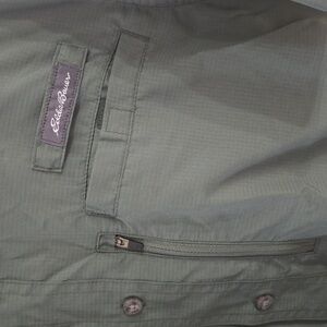 Classic button-up shirt by Eddie Bauer. Features short sleeves and a chest pocket. Ideal for everyday comfort.