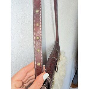 Montana Silversmiths Hand Tooled Leather Western Fur Crossbody Handbag Purse
