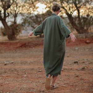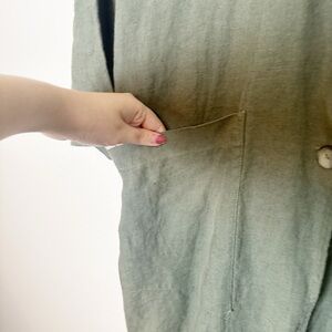 Seaside tones linen kimono coat khaki olive green pockets longline in excellent condition, no flaws