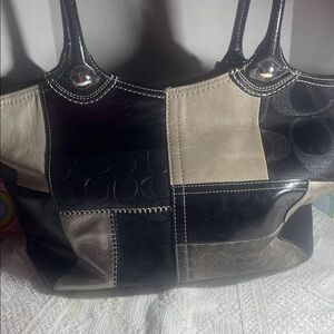Coach Black and Tan Patchwork Tote