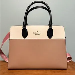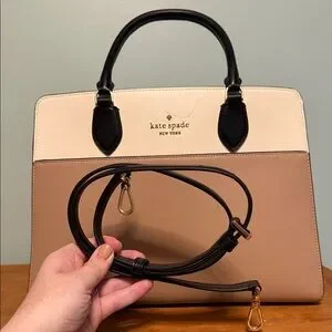 kate spade Cream and Tan Satchel with Black Handles
