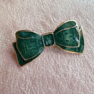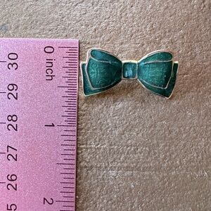 Vintage Petite Teal Green Enamel Bow Brooch Pin Gold Tone