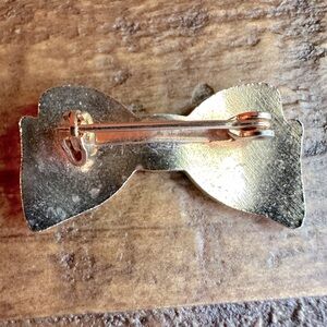 This little brooch is adorable to pin to just about anything you'd like a little bit of girly charm. Adorn a small tote, headband, wallet... so many ideas! The color is a really pretty teal green and there is a swirl design in the enameling.