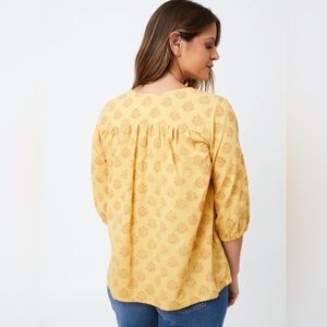 NWT Mata Traders Stamp Top Mustard Yellow Peasant Blouse Boho Tunic 100% Cotton