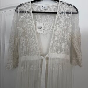 This elegant lace dress features a delicate design perfect for special occasions. The white color adds a touch of sophistication and grace.