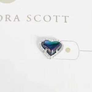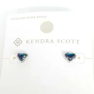 Kendra Scott Anna Heart Stud Earring Navy Iridescent / Silver Rhodium Over Brass