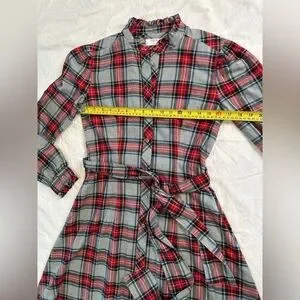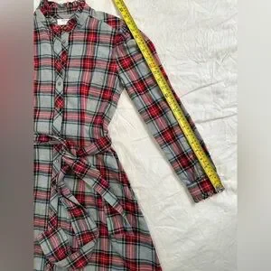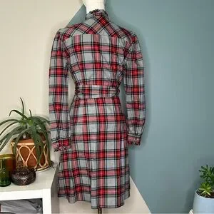 UNTUCKit Harrison Plaid Flannel Shirtdress Red Grey Tartan Belted Pockets Size 0 (Fits Like 4 Small)