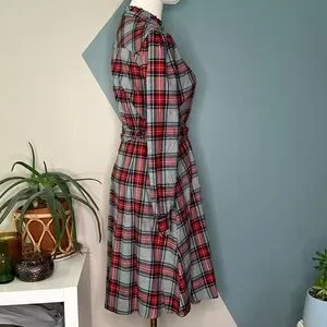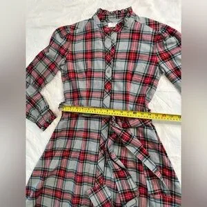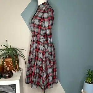UNTUCKit Harrison Plaid Flannel Shirtdress Red Grey Tartan Belted Pockets Size S