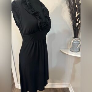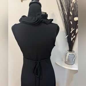 BCX black dress with this elegant Ruffle Neckline, tie back Size Small Midi Dress