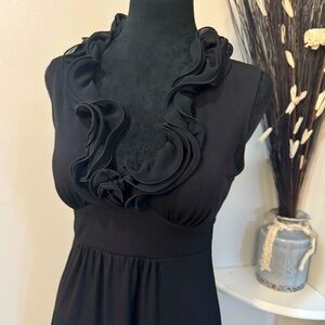 BCX black dress with this elegant Ruffle Neckline, tie back Size Small