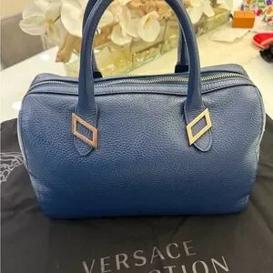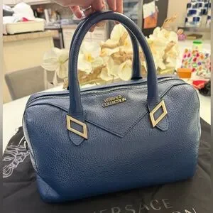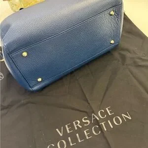 Versace Collection Vitello Handbag Blue Leather with Shoulder Strap and Dust Bag