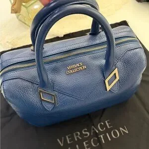 I am selling an elegant Versace Collection blue leather handbag, in like-new condition. Perfect for anyone looking for sophistication and practicality. Comes with a removable shoulder strap and the original dust bag for proper storage.