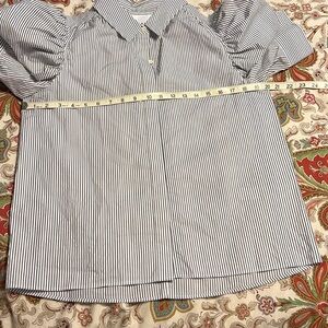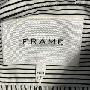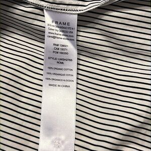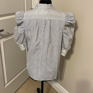 FRAME DENIM Ruched Puff Sleeve Shirt Blouse White with Black Stripes
