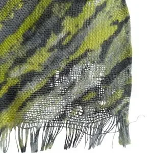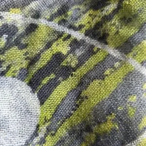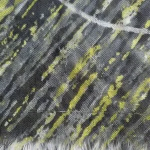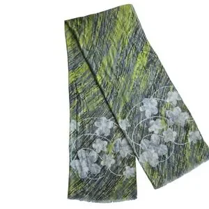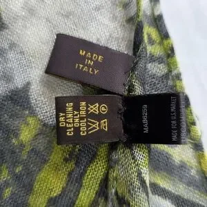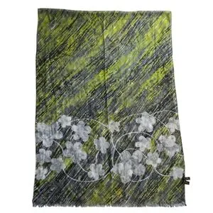 Luxurious scarf by Loro Piana. Features a blend of green and gray tones. Made from cashmere and silk.
