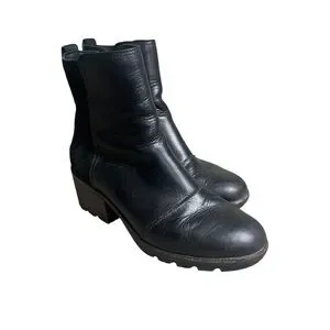 Sorel Cate Women’s black leather Waterproof winter ankle boots SZ 8