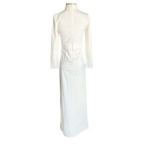 Stretch Cream White Long Sleeve Slit Gown Dress Bride Marylin Monroe Halloween