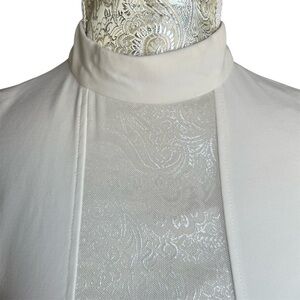 This is a beautiful & classy long sleeve dress in cream almost white color. It has a classic beauty Marylin Monroe type of timeless and elegant look. Sheer material in cheat, slit on the leg, and a hidden zipper in the back. I bought it for Halloween to dress up like a hot nurse but never got to wear it. It’s new, excellent condition, has some light dust marks zipper/neck design area from try on see last 3 photos very unnoticeable, sold as is, see photos for gorgeous material, color, and details in the description. Perfect to wear for a bride, cosplay, yacht, all white party, rooftop, upscale restaurant, upscale hotel, upscale dinner dates, date, resort, wedding photos, bridal party, bridal photos, GALA, Miami, art Basel, Euro vacation. It’s a classic timeless piece you need in your wardrobe!
