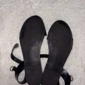 Chic black sandals with sleek straps. Ideal for versatile styling.