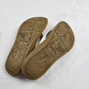 Keywords: Reef flip flops, women's sandals, size 9, white sandals, leaf print, casual footwear, beach shoes, summer sandals, synthetic sandals, slide sandals, slip on shoes, F-22 LTC, comfort sandals, neutral sandals, boho sandals