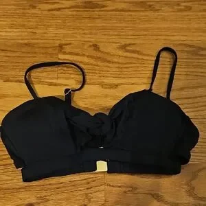 Stylish black swim top with strappy design. removable pads. excellent condition. only worn once