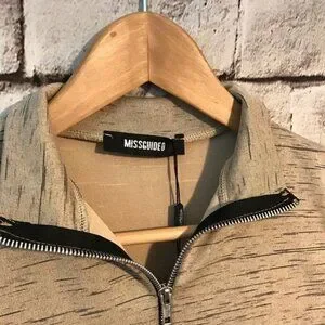 This Missguided dress offers a sleek, modern silhouette with its sleeveless design and zip front. Its neutral stone color suits a variety of occasions.